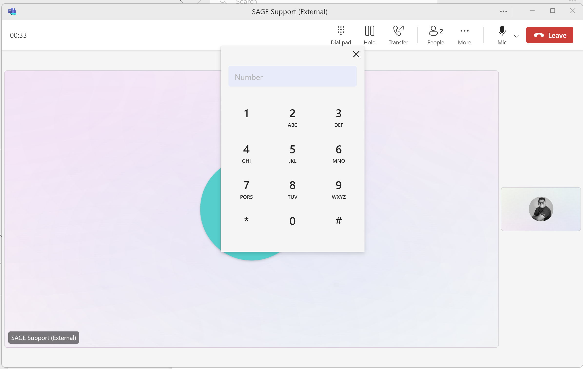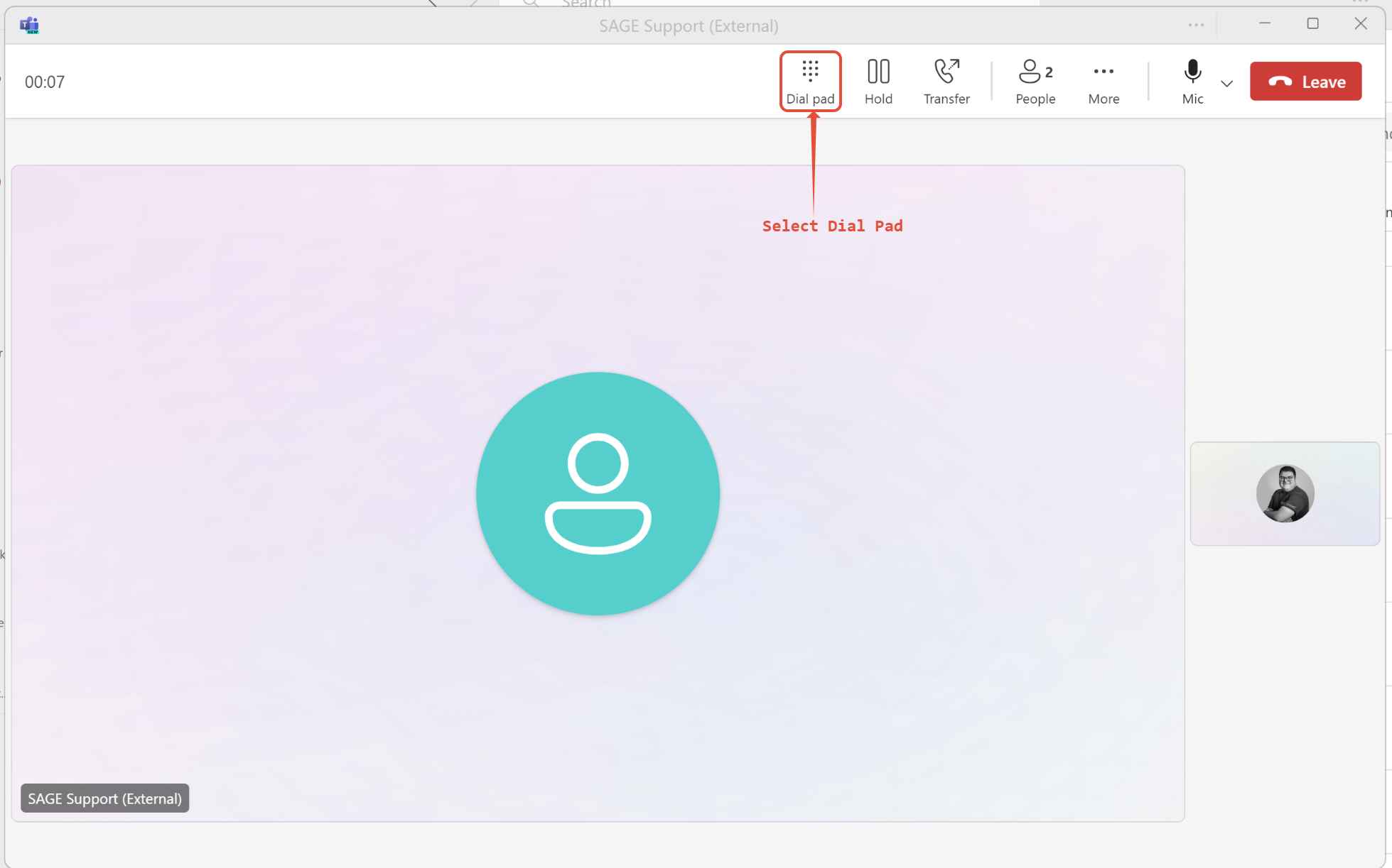 1) To use the dial pad, click the 'Dial pad' icon located in the top of the teams call window.
