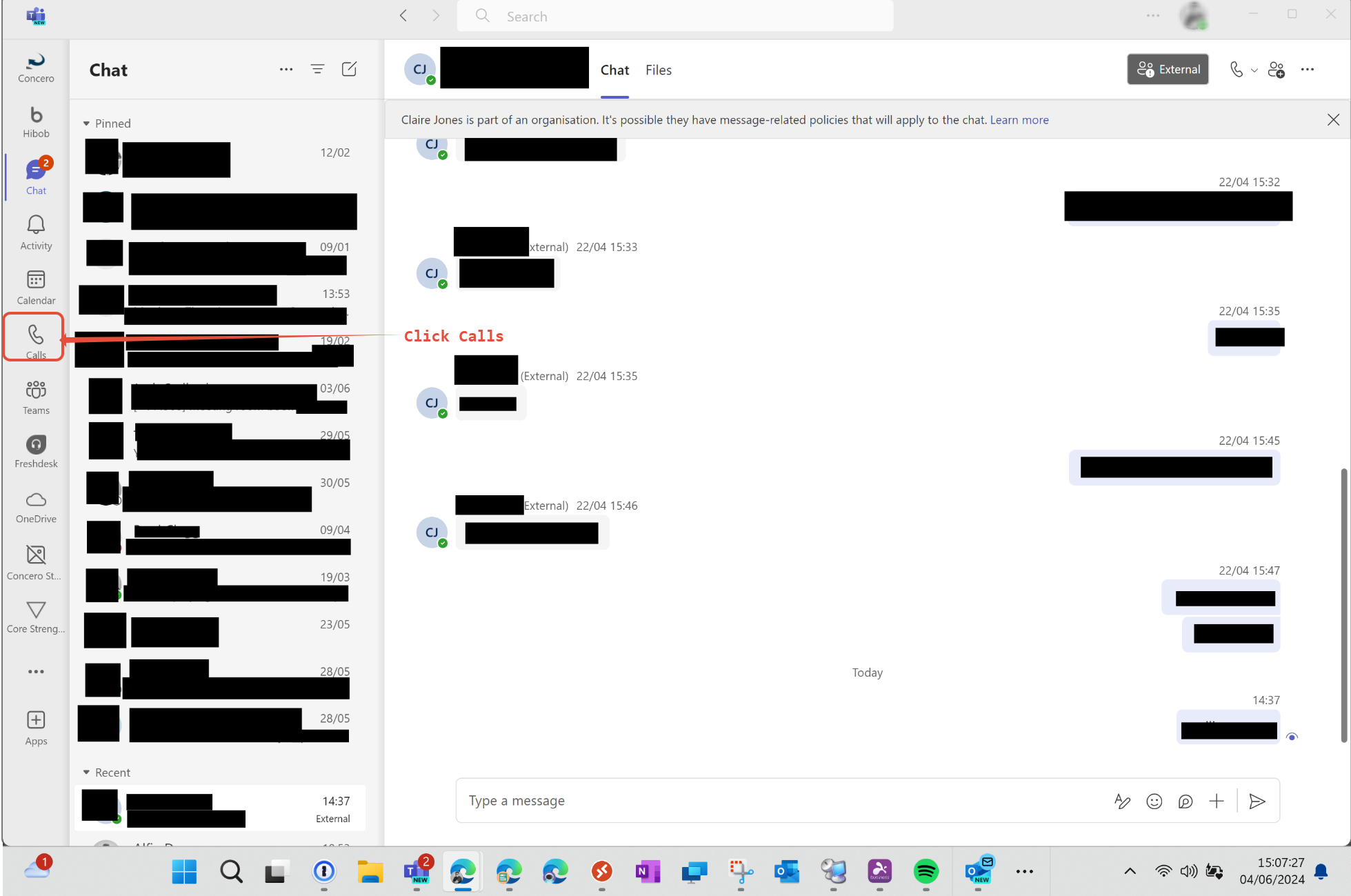 1) To make a call, click the 'Calls' icon located in the sidebar on Teams.