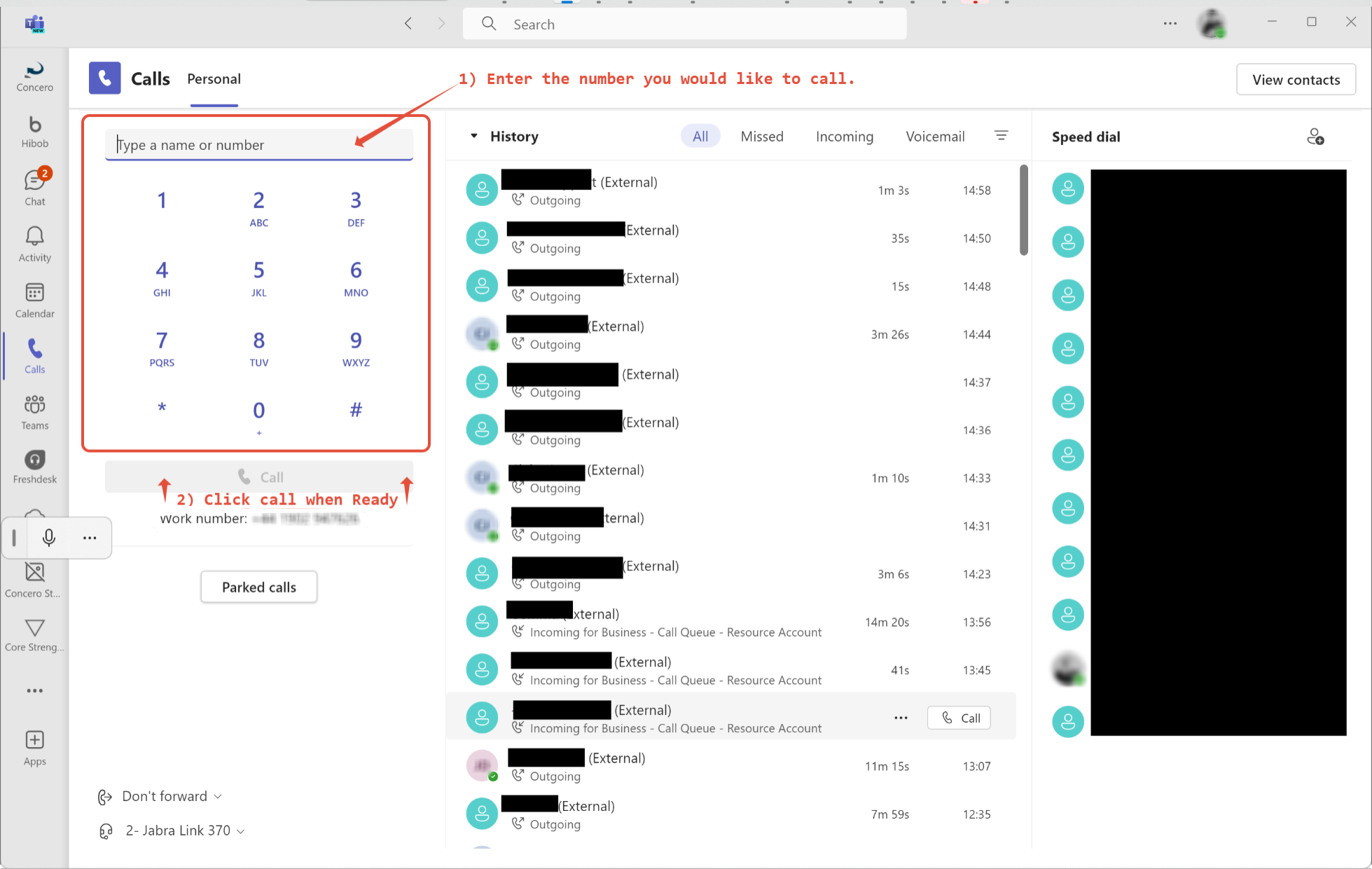 The below screen will have a dialling pad and a space to enter the number of who you would like to call, you can then click call under the dial pad to start calling the number you entered.