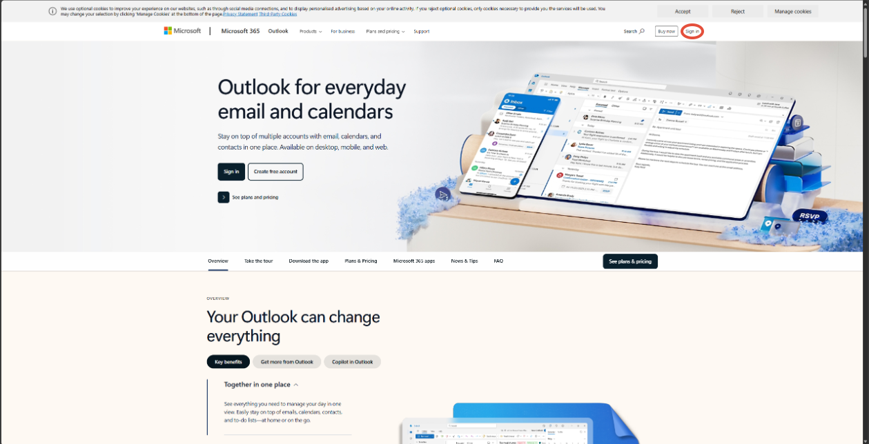 Then In the URL bar at very top search: Outlook.com