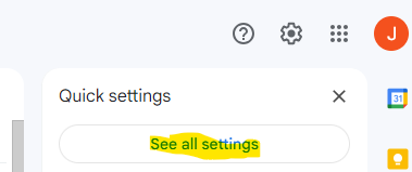 2) Go to the top right of the screen and select the settings cog which will then allow you to select See all settings.