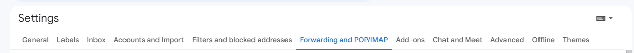 3) Within all settings, select the tab Forwarding and POP/IMAP.