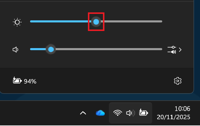 Lower your brightness using the Display settings or the brightness keys on your keyboard. - Tip: