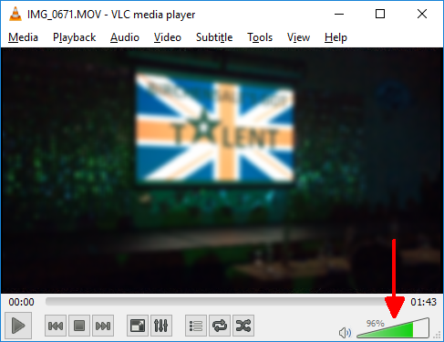 Some applications, typically media players, can control their own audio and have a set of controls within them. In the example below, VLC media player has a volume slider in the bottom right of the application.
