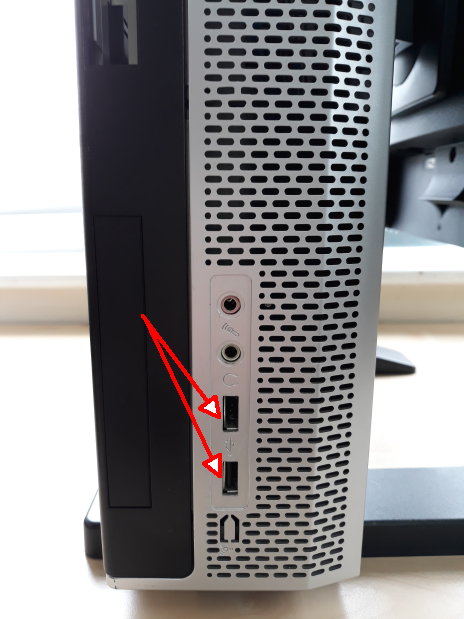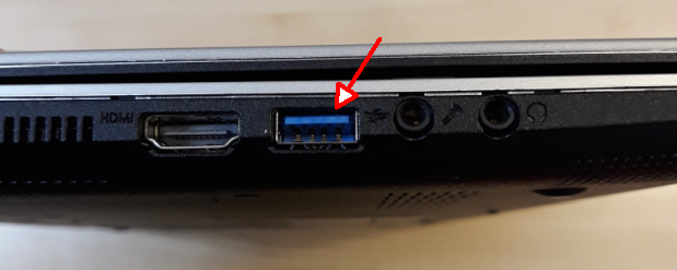 | Some speakers/headphones use an AUX connection to connect to the PC (as pictured above). Make sure your audio device is plugged in to one of the circular ports as shown below (sometimes they are colour coded GREEN) on the front or back of the PC or sides of a laptop. | Other speakers/headphones use a USB connection (as pictured above). Make sure your audio device is plugged in to one of these ports. There are often multiple on any PC or laptop. | ||