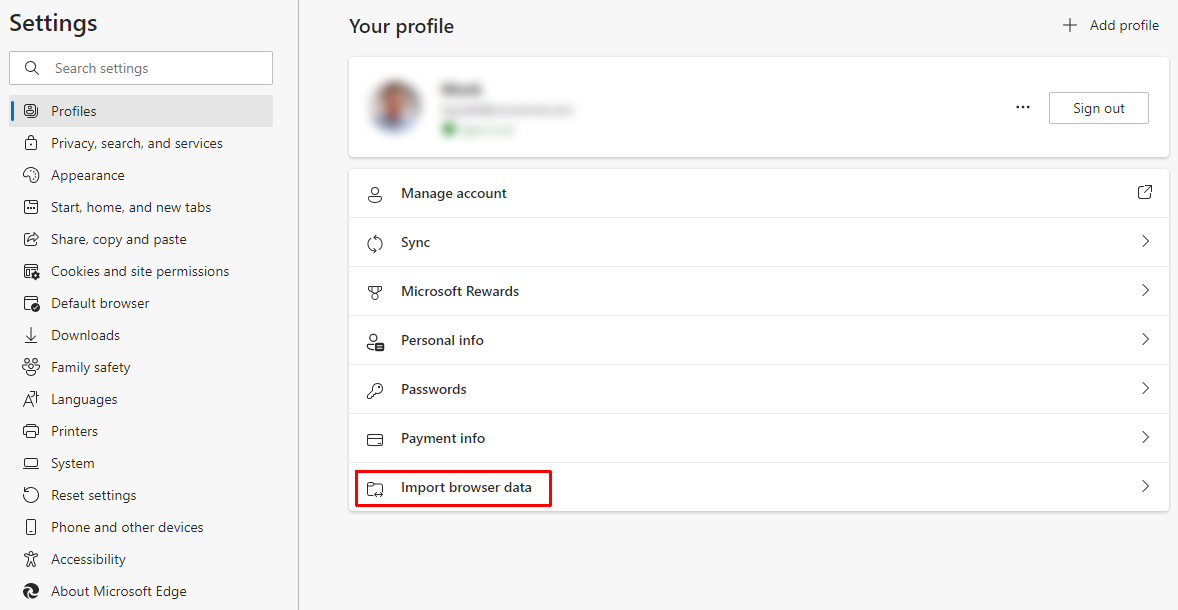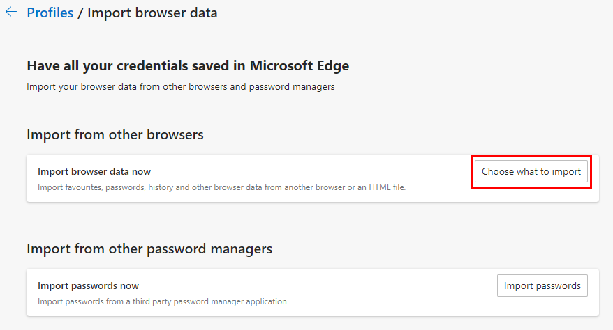 Once the Settings page appears, select 'Import browser data'.
