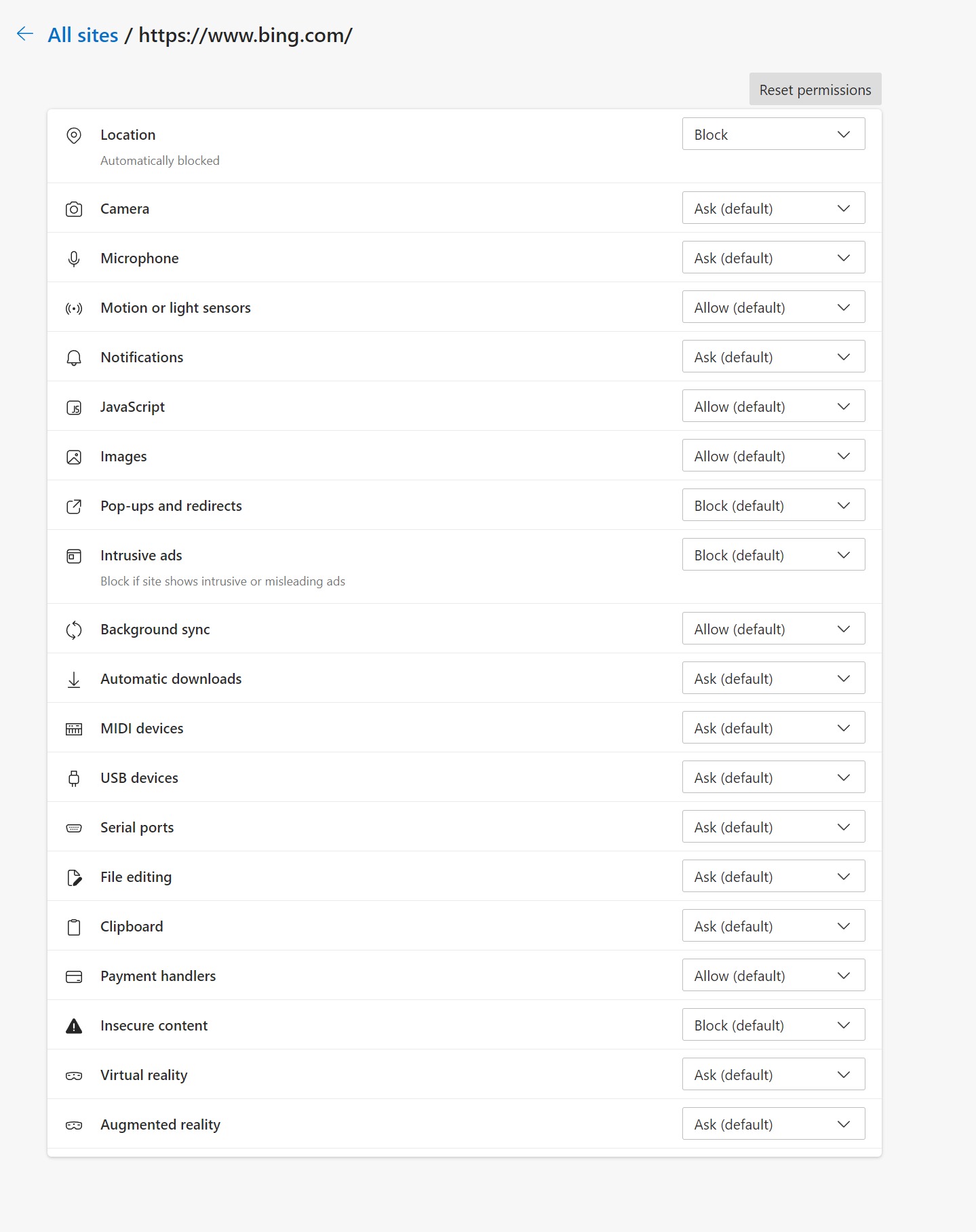 - Click on the website and reset permissions.
