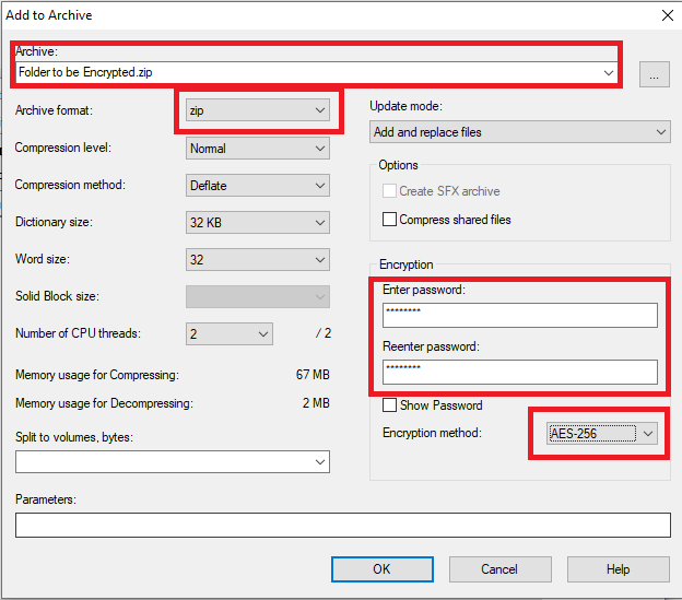 - Change the archive format to Zip