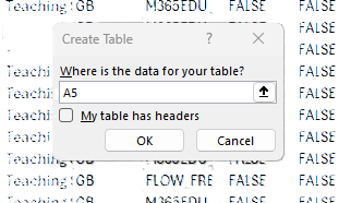 If you need to add a table pressing "CTRL+T" will add on automatically once you have entered which cell you want it to start from.