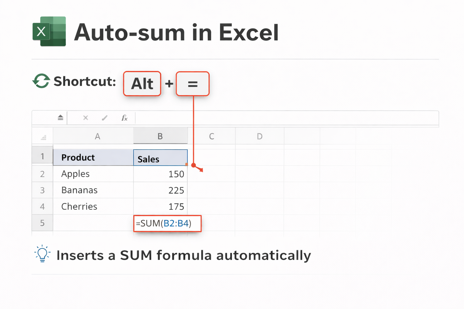 If you want a sum formula for with typing it press "ALT+=" this will automatically do the sum.
