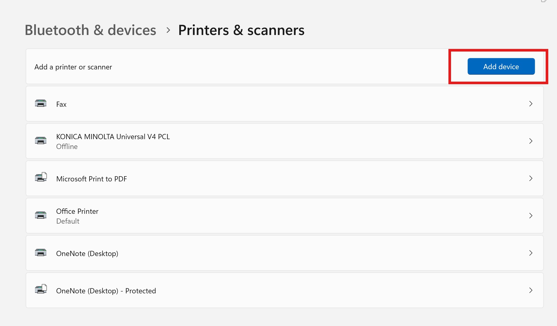 2) If your printer isn't listed go to "Add device".