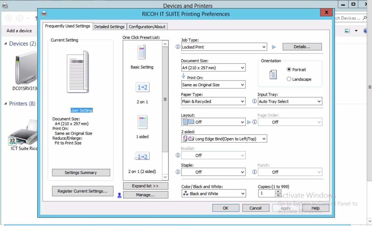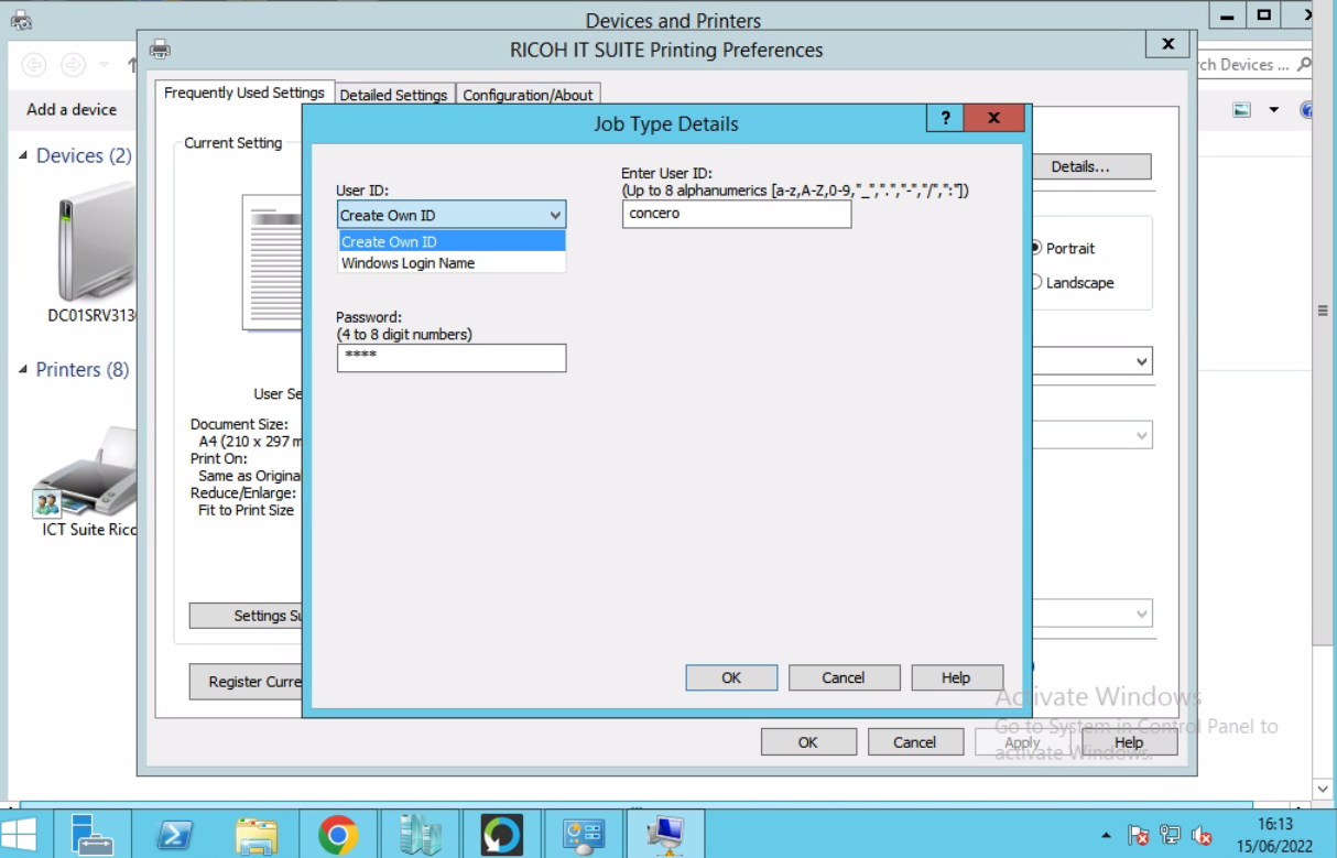 - Select "Ok" on the "Job Type Details" tab, and click "Apply" on the Printer Preferences tab, then click "Ok".