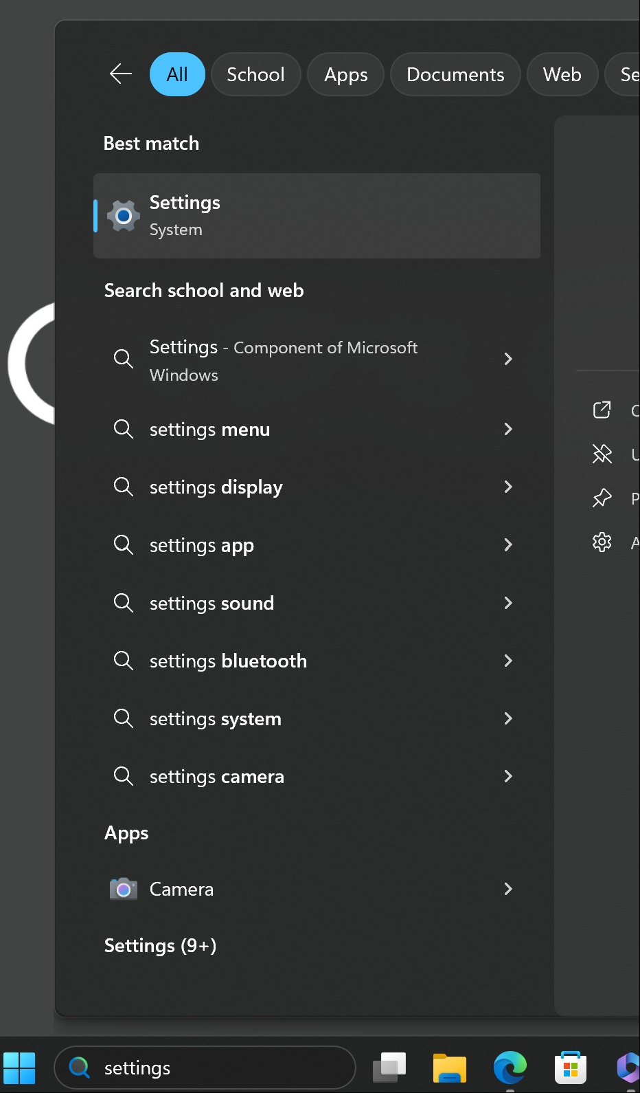 1. Either press the Start button, or type 'Settings' in the search