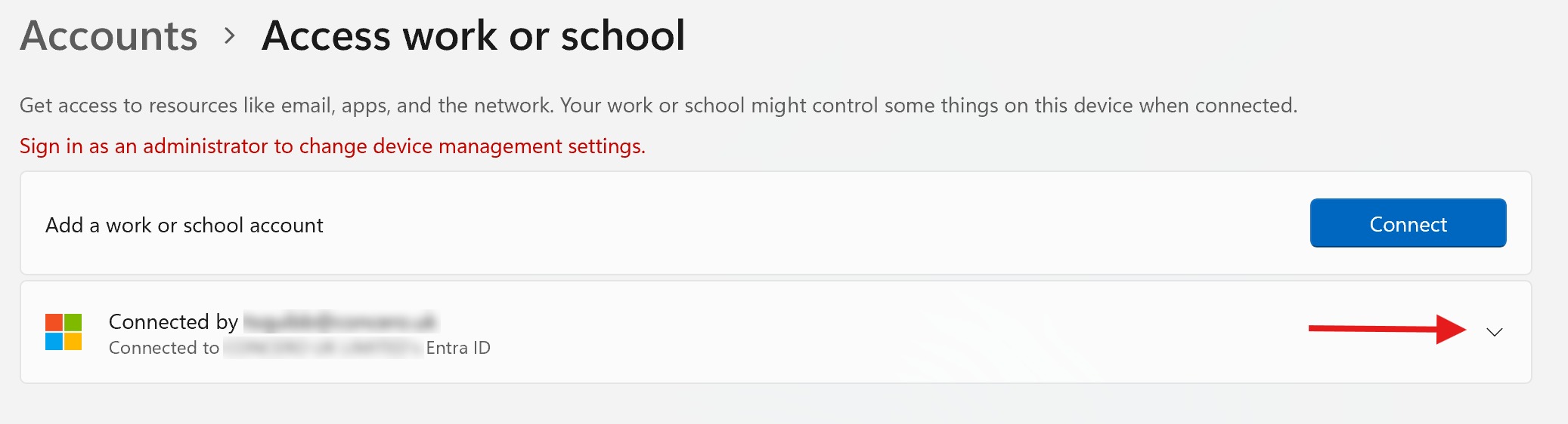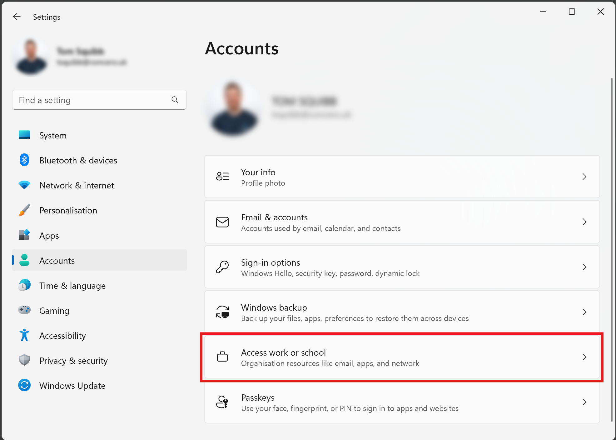 - Click Access work or school.