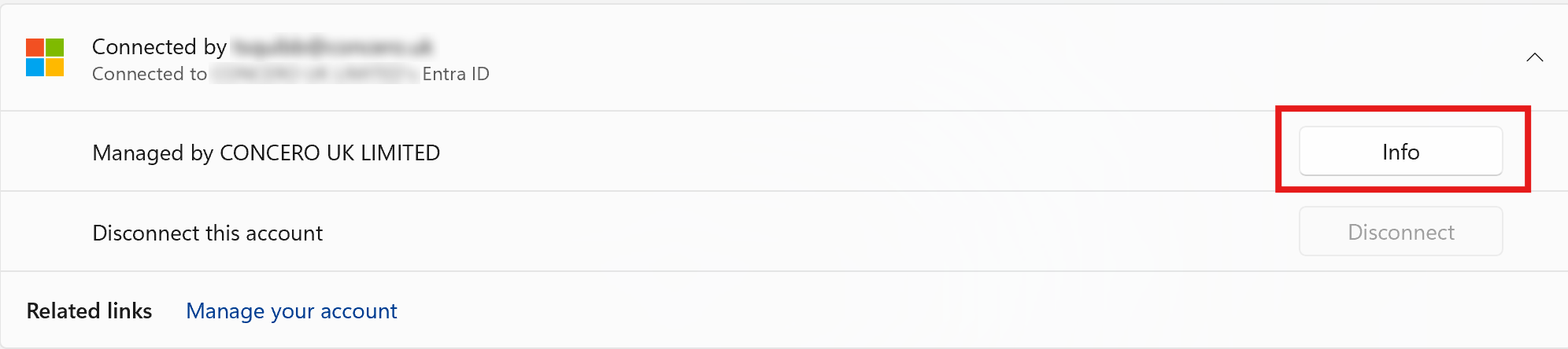 - Under your connected account, click Info.