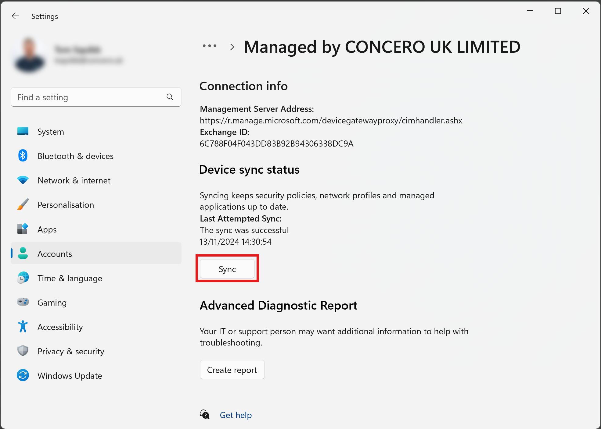 Your device will now sync with the latest settings and policies.