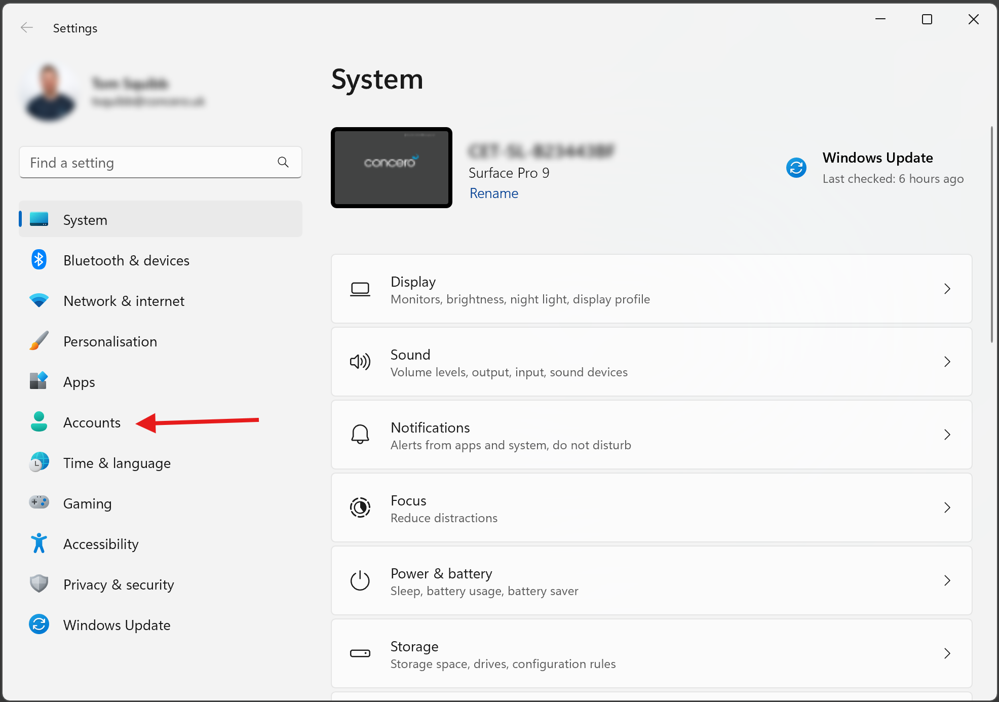 - Select Accounts (On the left-hand menu).
