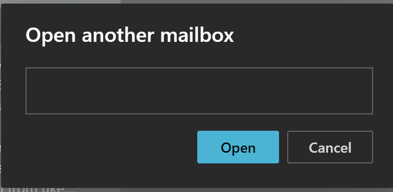 4) Select 'Open another mailbox' and enter the email of the shared account. You will not require the password for this.