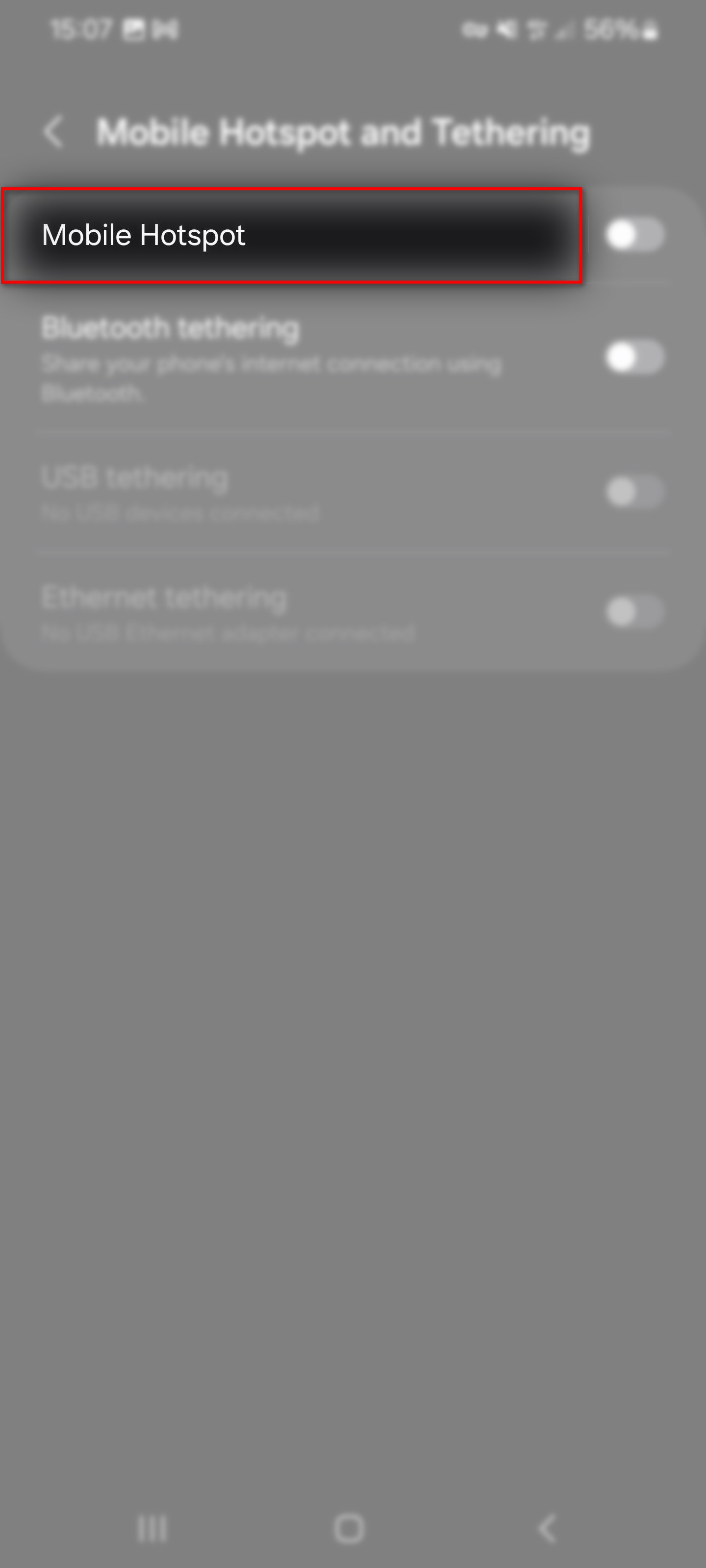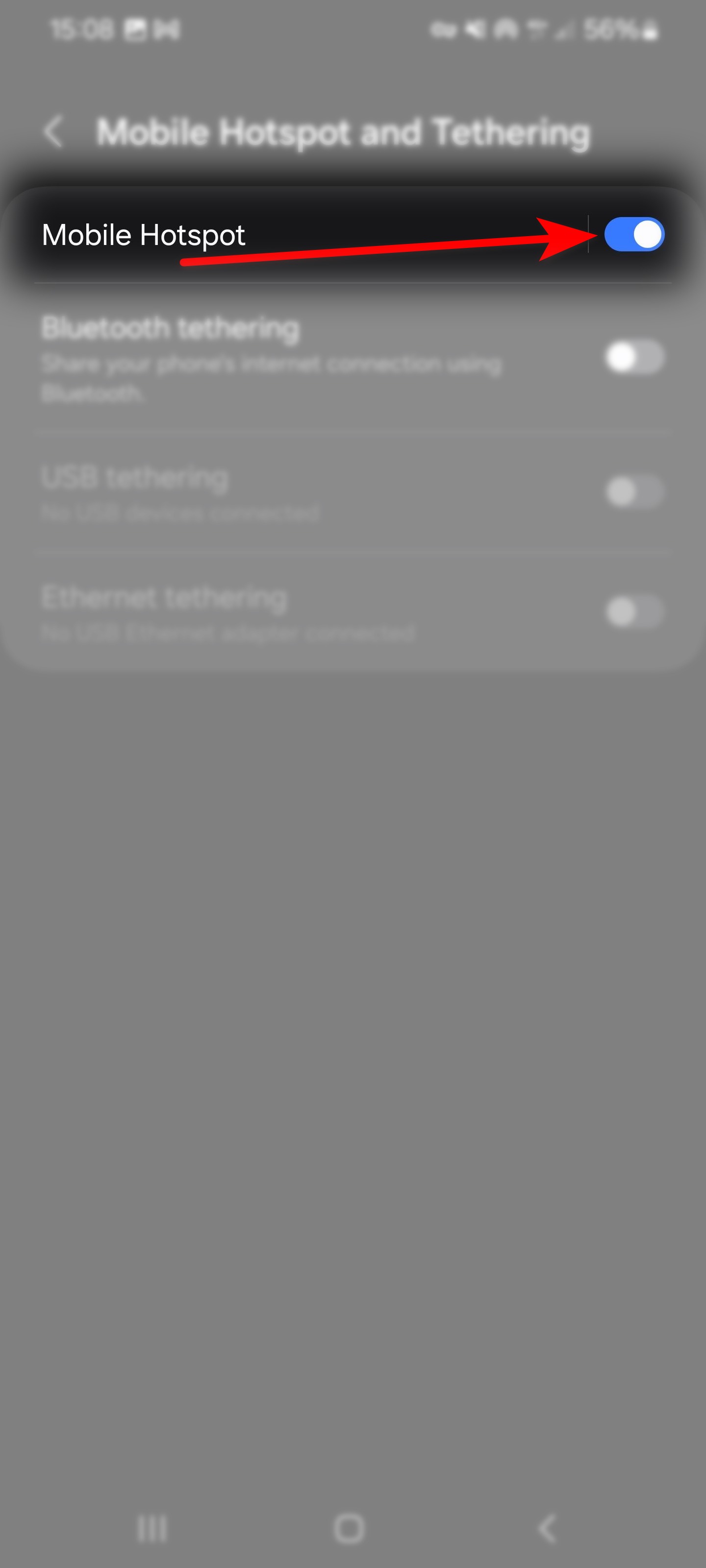 6. Now you can go back and toggle the Mobile Hotspot On: