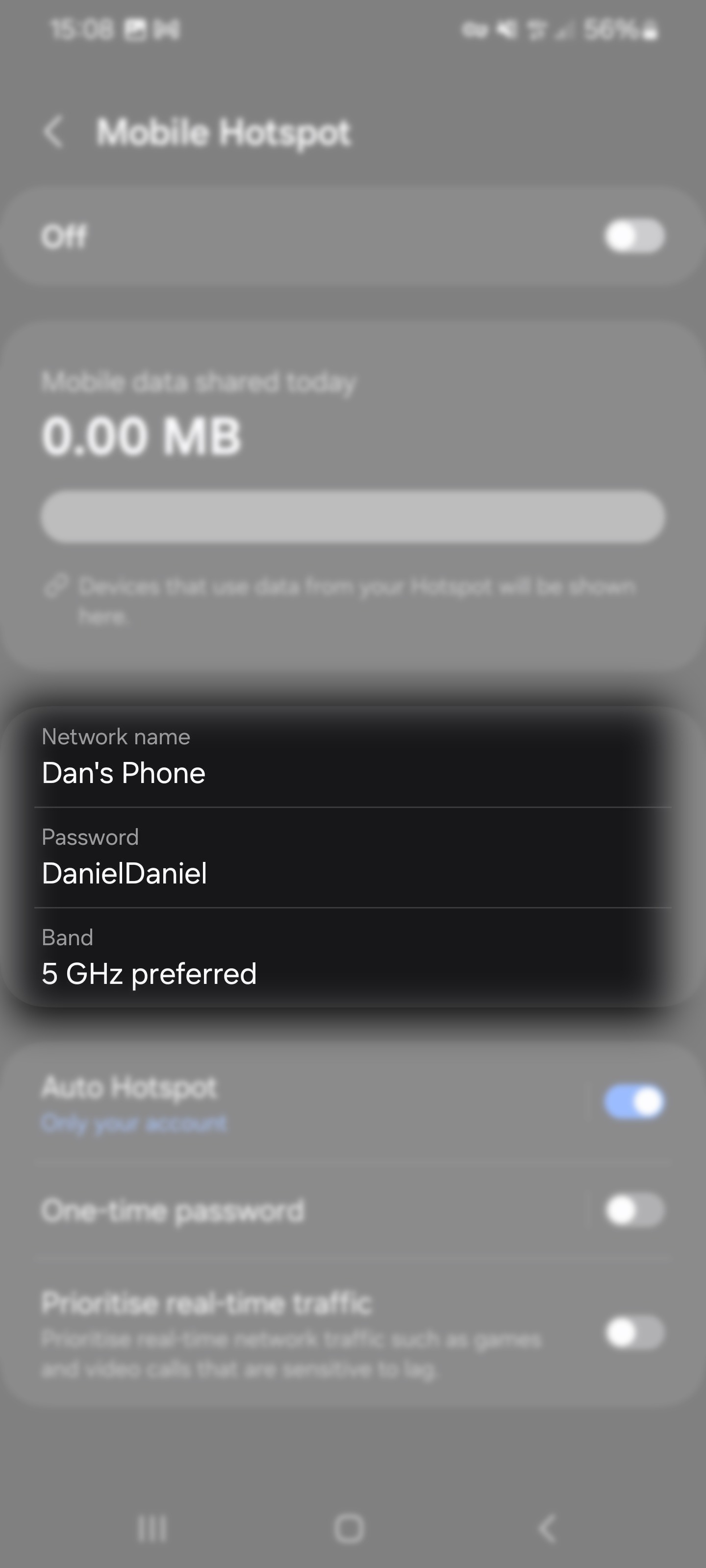 5. Give your 'Network name' a name you'll recognise when you want to connect to it from your laptop, and set a Password too