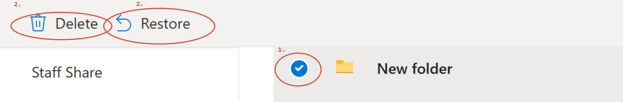 Once you follow the Step 1. on the screenshot you can chose weather you want to delete or restore content, to restore content you have a 93 day retention period meaning 93 days until they are gone from the recycle bin.