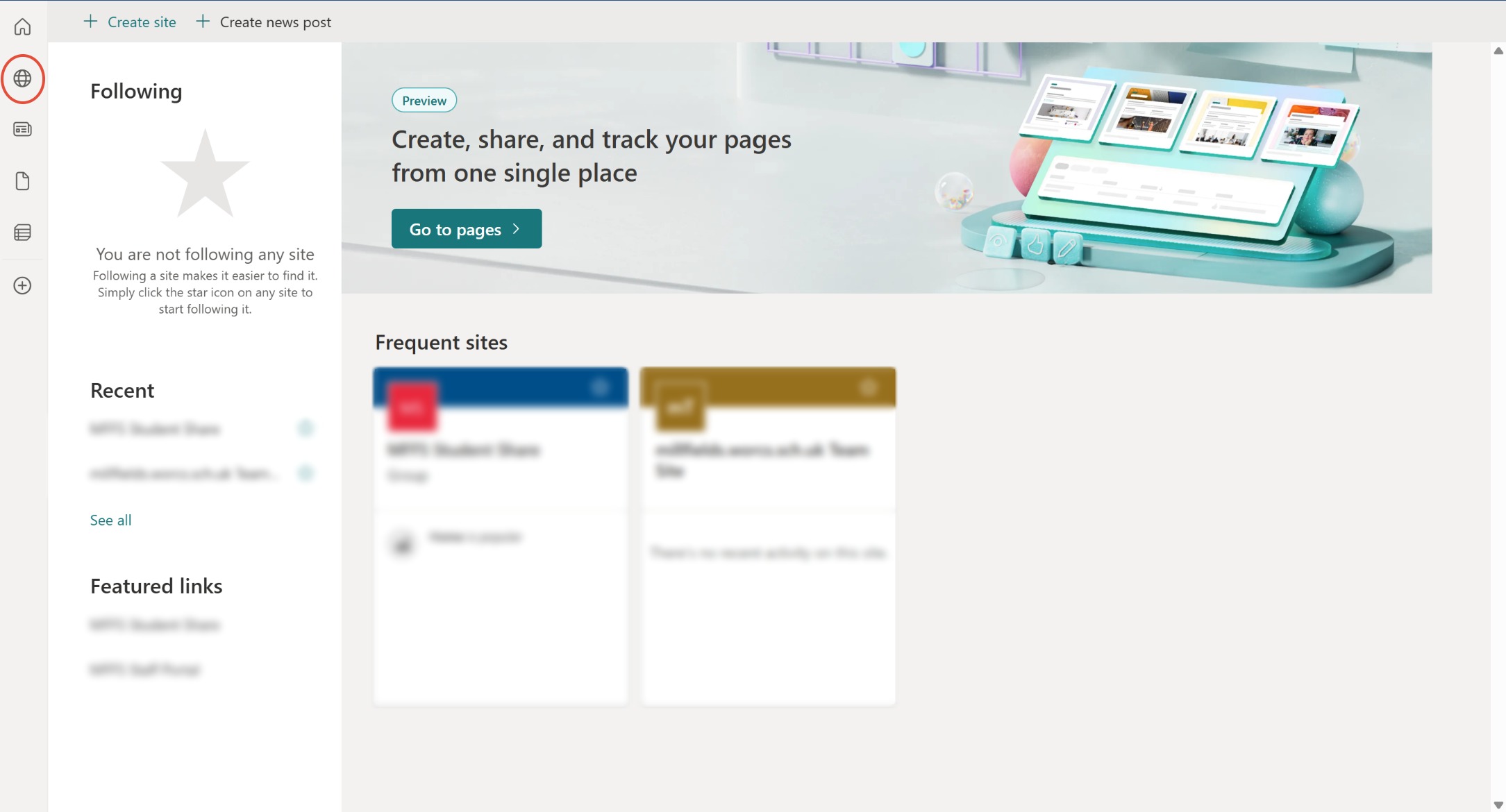 This is where you can see your current sites when selecting the my sites icon on the left side of your screen.